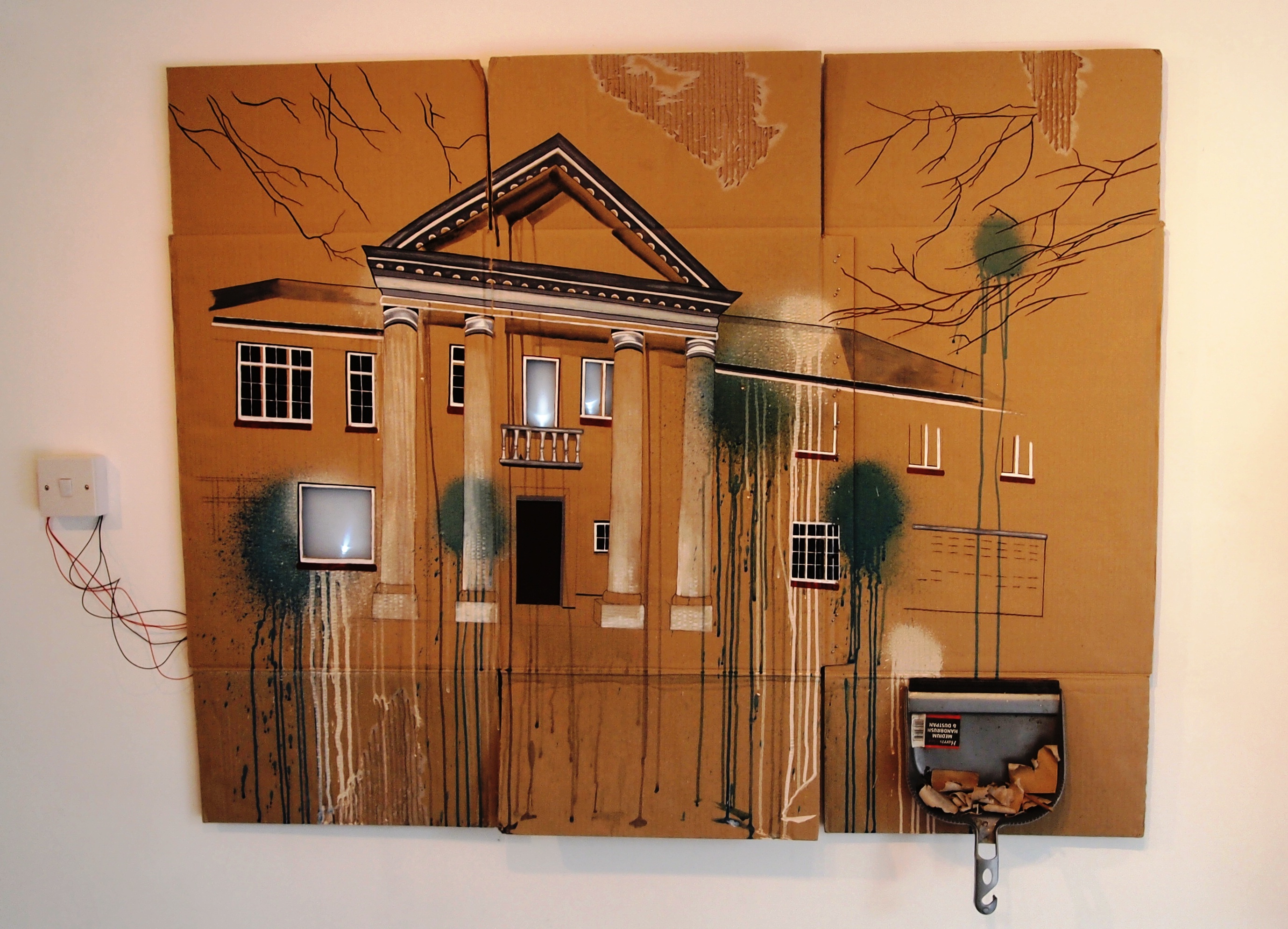 During October 2015, a new interactive work called Dead Pigeons and Chandeliers was displayed as part of the Poor Door exhibition at A-Side B-Side gallery in Hackney. The work depicts one of the mansions on ‘Billionaire’s Row’ that was left derelict for twenty years. In this particular property, the water had never even been turned on despite the house being complete with decadent fittings and furnishings. Ten artists joined forces for this show which campaigned for affordable housing through painting, photography, sculpture and performance.